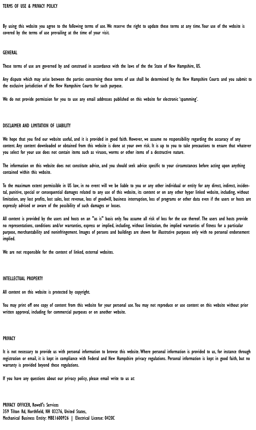 "Friendly As Can Be Since 1983!" When you need help with your plumbing, drains, heating, cooling or electrical in Barrington, you can always rely on Rowell's Services! Call us now or book online!